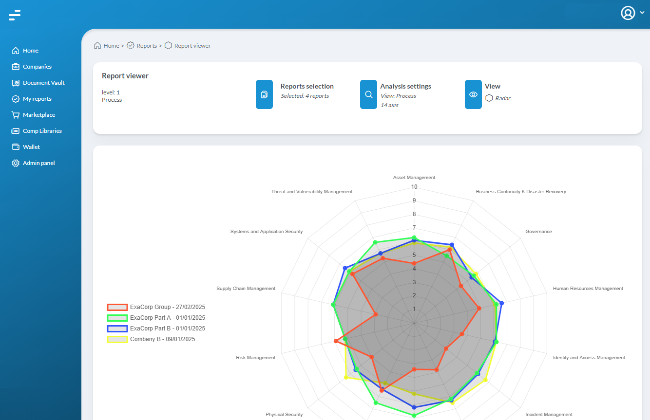 Our platform streamline the assessment and monitoring of cybersecurity posture cutting cost, time, and complexity, leveraging AI to automate the analysis of documentary evidence with bias-free and multi-framework evaluation model.